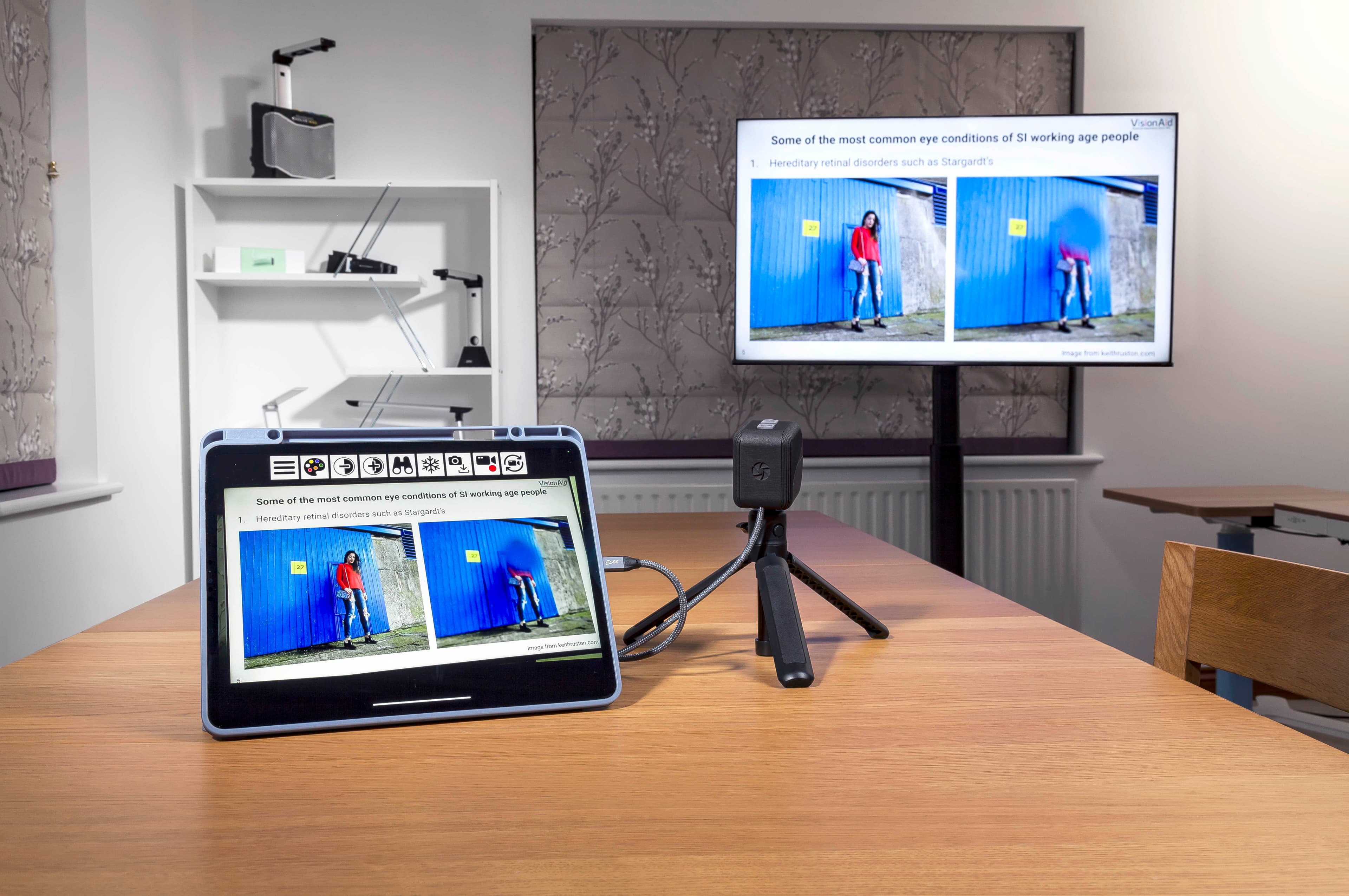 Real time video deskew: A unique game-changing feature freeing low vision users from the centre of the room. It allows them to sit at practically any angle to the target and have it straightened as if they were sat directly in the centre of it